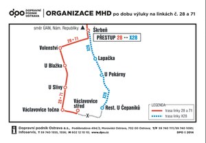 Na některých autobusových spojích Dopravního podniku Ostrava dojde k dočasným změnám organizace dopravy. Od pátku 18. 4. 2014 (00:00 h) do soboty 28. 6. 2014 (24:00 h) se změny dotknou tras autobusových linek č. 28 a 71.