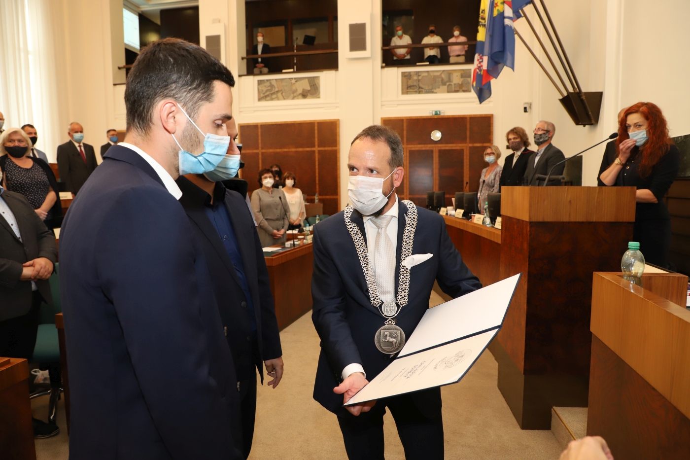 Cenu města in memoriam pro Petra Čolase převzali jeho synové Filip a David.