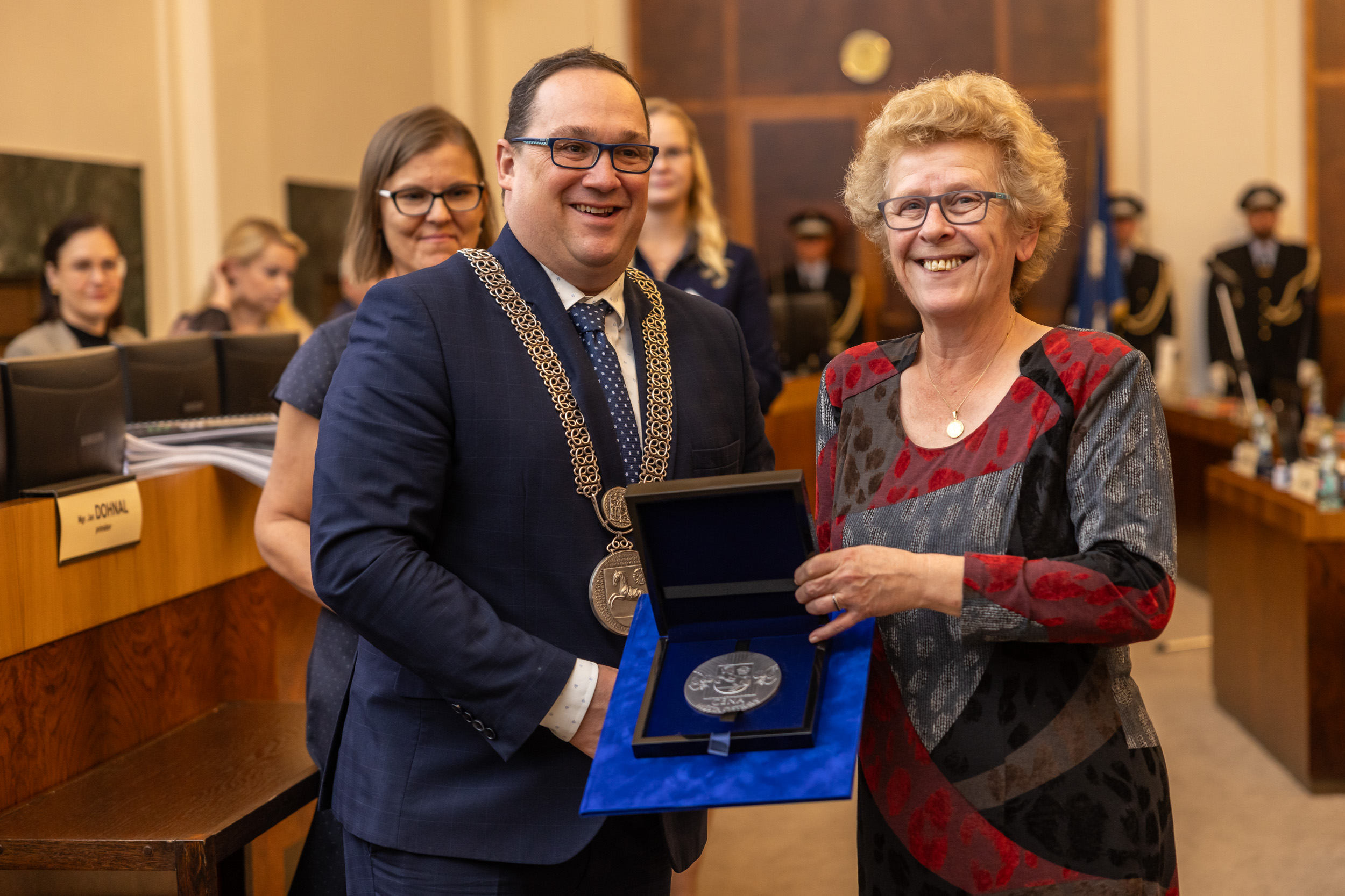 Josef Jařab byl oceněn in memoriam. Cenu města Ostravy převzala vdova Ingeborg Fialová