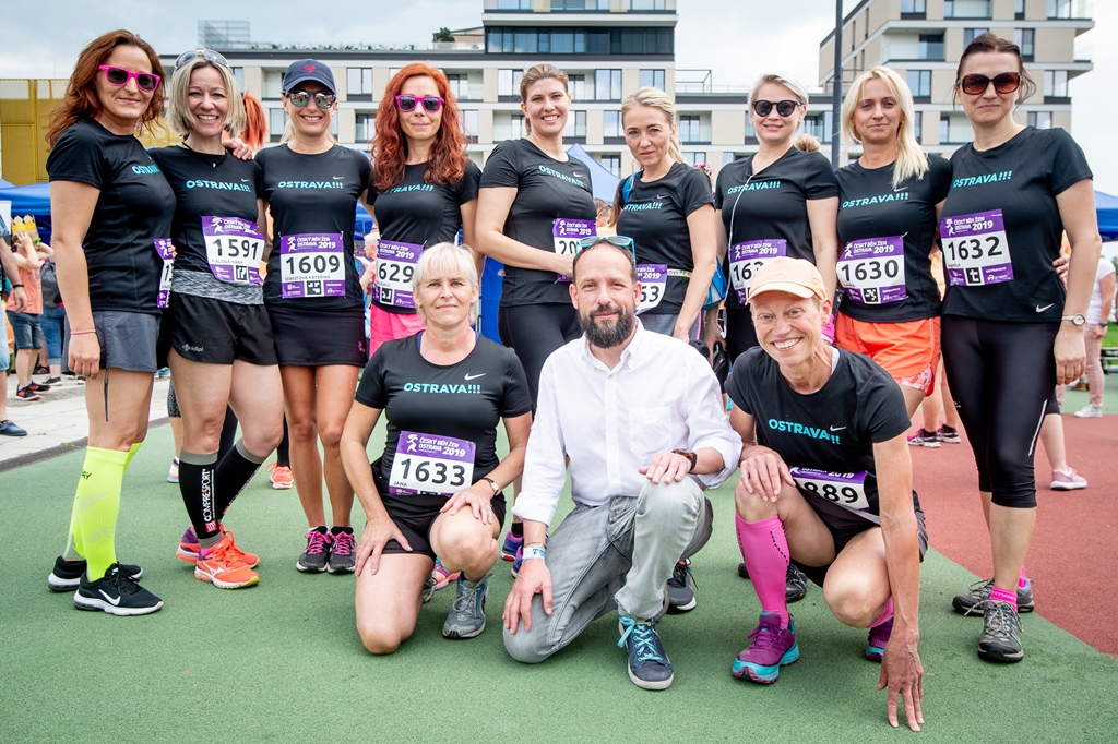 Primátor Tomáš Macura s běžkyněmi ostravského magistrátu. Stojící třetí zleva je náměstkyně Kateřina Šebestová, která zaběhla pětikilometrovou trať.