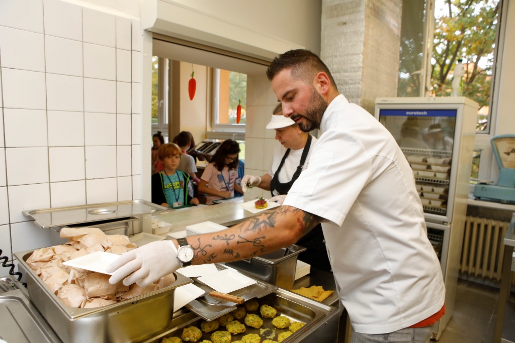 David Valíček při výdeji jídla.