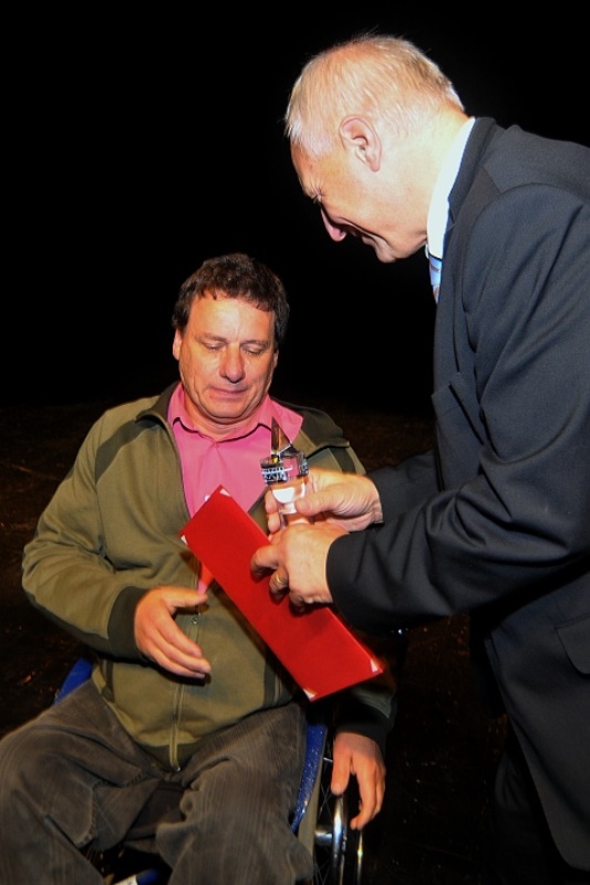 Zbyněk Pražák předává cenu Tomáši Dvořákovi.