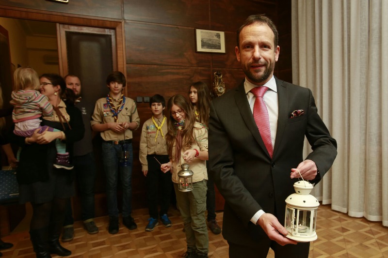 Primátor T. Macura s ostravskými skauty a Betlémským světlem.