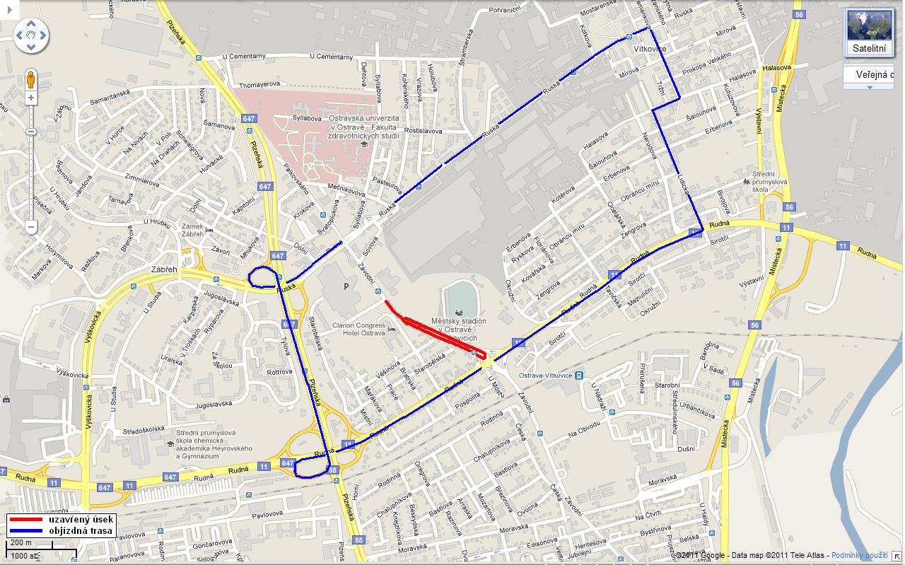 V neděli 17. 7. 2011 v době od 5:00 h do 13:00 hod. budou kvůli konání závodu v chůzi všechny spoje tramvajových linek č. 3 a 11 odkloněny po ul. Výškovické přes zastávku Karpatská. Zvláštní tramvajová linka č. 15 bude v neděli 17. 7. do cca 13:00 h zastavena. Za linku č. 11 bude v úseku zastávek „Most Čs. armády – Zábřeh vodárna – Zábřeh“ a zpět zavedena náhradní tramvajová doprava (NTD). Cestující ze zastávek Rodimcevova, Kpt. Vajdy, Most Mládeže, Nádraží Vítkovice a Most Čs. armády využijí pro jízdu do centra spoje NTD jedoucí do Zábřehu s přestupem na zastávce Zábřeh vodárna.