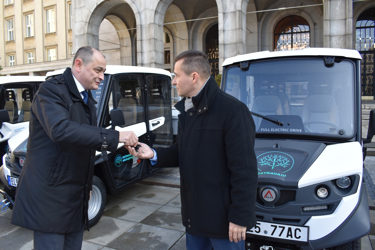 Klíče k novým vozům předal náměstek primátora Radim Babinec (vlevo).