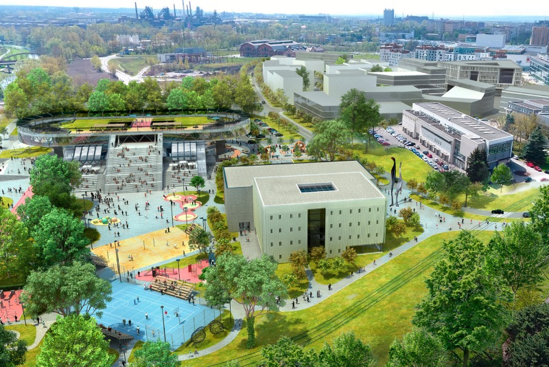 Vizualizace areálu s plánovanými budovami v místě, kde je nyní tramvajová smyčka.