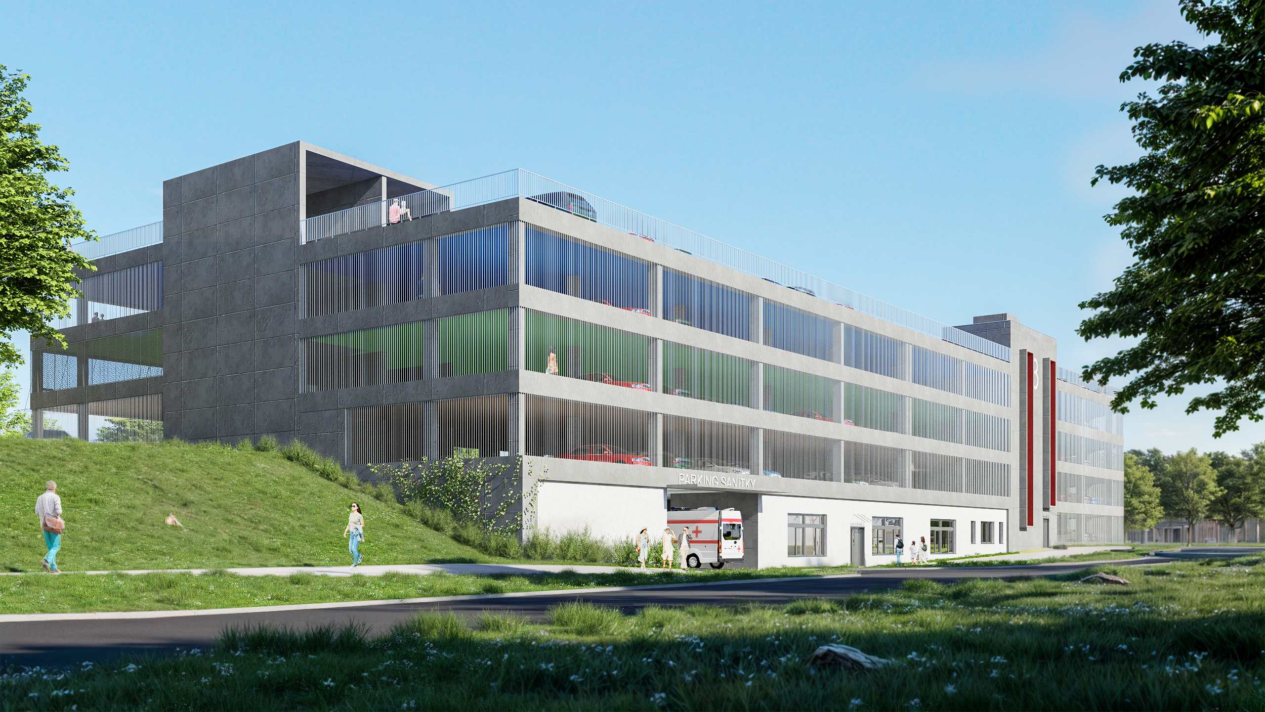 Takto bude vypadat nový parkovací dům u Fakultní nemocnice Ostrava. Zdroj: FNO