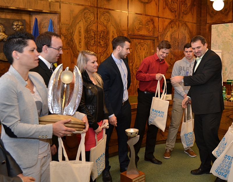 Náměstek primátora M. Štěpánek předává upomínkové předměty města