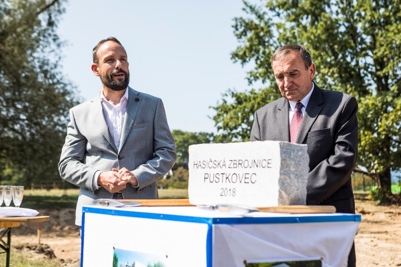 Primátor Tomáš Macura a starosta Pustkovce Stanislav Pyš během slavnostního zahájení stavby