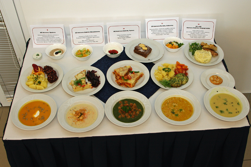 Soutěžní jídla. Vítězné menu Radky Čechové je úplně vpravo.