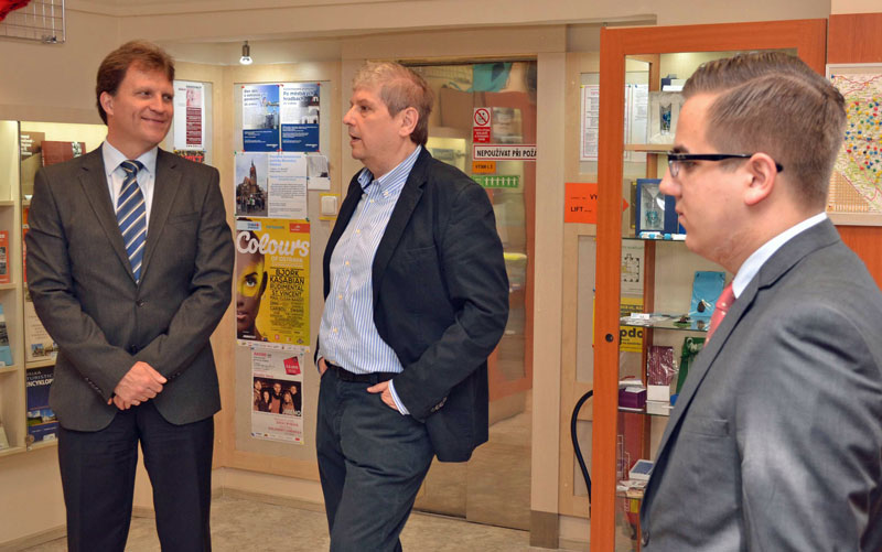Lumír Palyza a Radim Chytka před otevřením pobočky OIS.