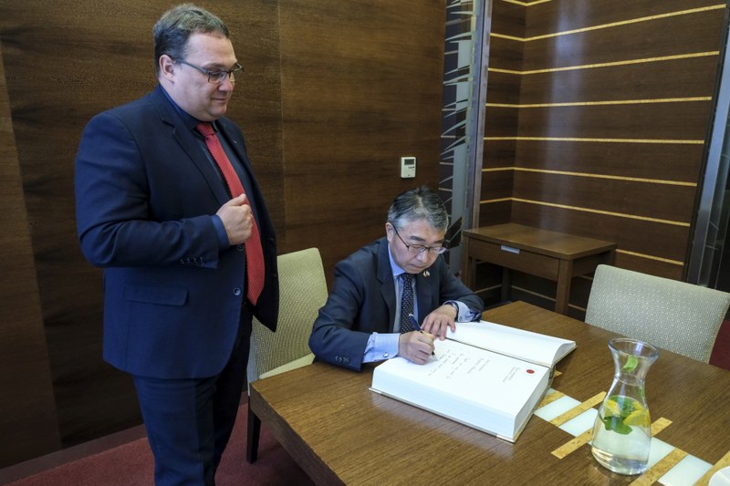 Do Ostravy přijel japonský velvyslanec, NAGAOKA Kansuke v doprovodu ITO Naoyuki, kulturního attaché a ředitele Japonského informačního a kulturního centra. Čerstvě zvolený velvyslanec (v únoru 2024) Ostravu navštívil vůbec poprvé.