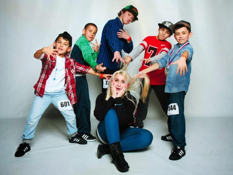 Členové hip-hopové taneční skupiny Boys s trenérkou Adrianou Adámkovou na propagačním snímku...