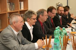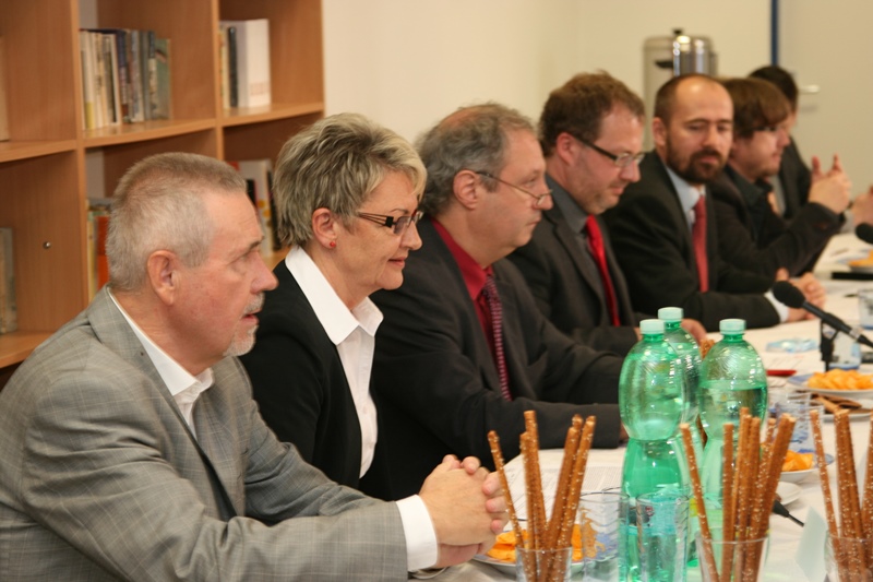 Jaroslava Rovňáková mezi účastníky tiskové konference k zahájení Dnů proti chudobě. Foto: Bohuslav Krzyžanek