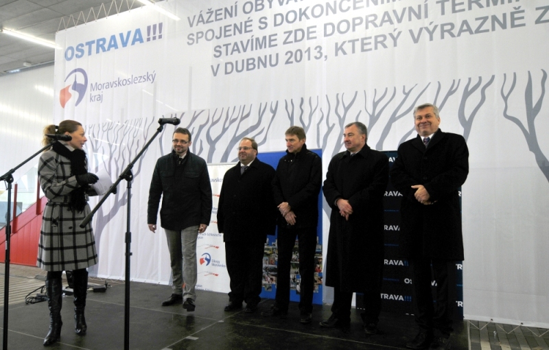Slavnostního otevření Svinovských mostů se zúčastnili (zleva) David Sventek - ředitel ÚRR; Miroslav Novák - hejtman MSK; Oldřich Štercl - zástupce zhotovitele stavby Sdružení pro přednádražní prostor Svinov; Pavel Jankůj - ředitel společnosti SDS Exmost a Petr Kajnar - primátor SMO.