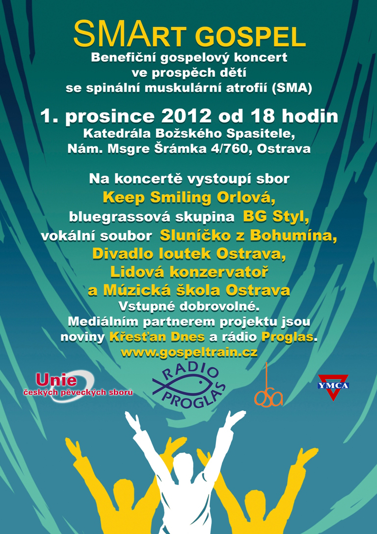 Těsně před začátkem adventu se ve čtyřech českých a moravských kostelích budou na benefičních koncertech zpívat gospely v rámci projektu SMArt Gospel, který má za cíl podpořit rodiny dětí, které se narodily s vzácnou, dědičnou a smrtelnou nemocí – se spinální muskulární atrofií (SMA). Koncerty se uskuteční v Praze, Plzni, Olomouci a také v Ostravě.