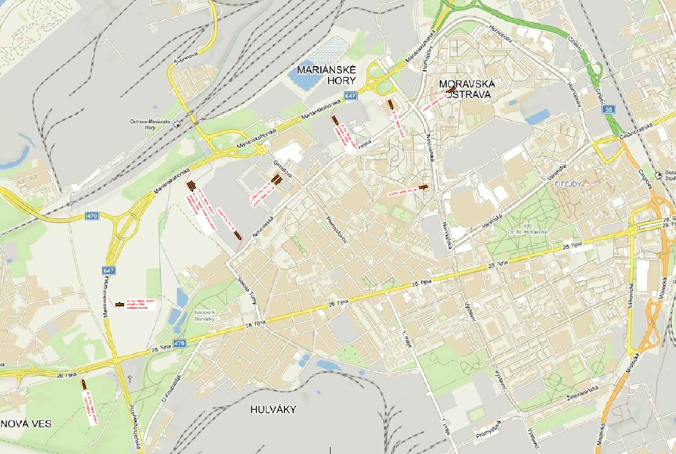 Uzavírka silnice II/479 (ul. 28. října) za křižovatkou silnic 28. října, Plzeňské a Mariánskohorské směrem na Mariánské Hory a Hulváky potrvá od 14. do 31. října. Uzavřený úsek této frekventované komunikace bude možné objet po vyznačených trasách. Dešťová kanalizace je v havarijním stavu, při větších srážkách dochází k zatopení správní budovy Úpravny vod Ostravských vodáren a kanalizací. Proto se musí opravit ještě letos. Prosíme řidiče o trpělivost, disciplinovanost a ohleduplnost, aby na místě nedocházelo ke kolizím a dopravním nehodám. Doporučujeme všem využít možnosti cestovat městskou hromadnou dopravou, která bude místem projíždět bez problémů.