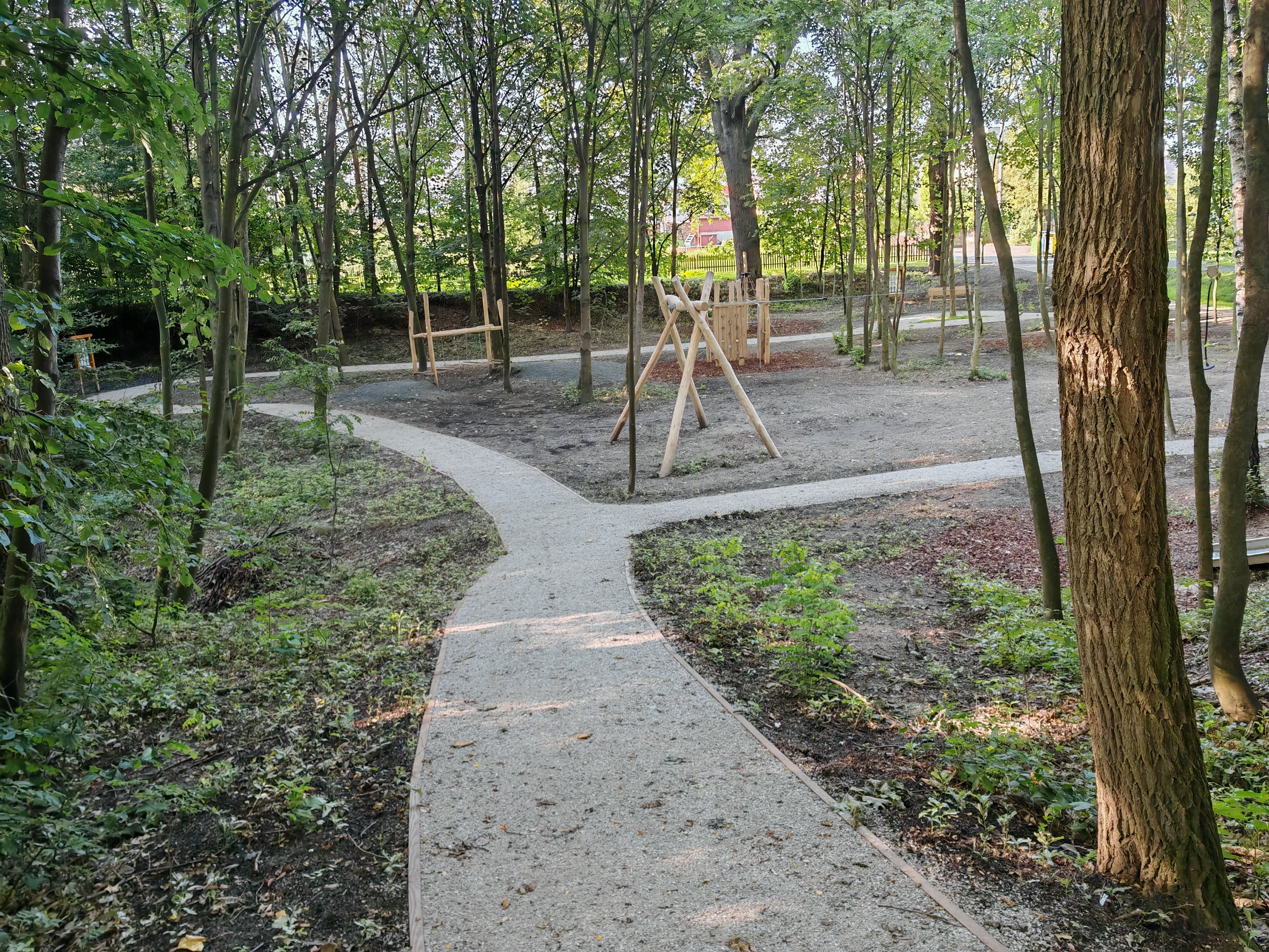 Lesním hřištěm prostupují úhledné pochozí chodníčky