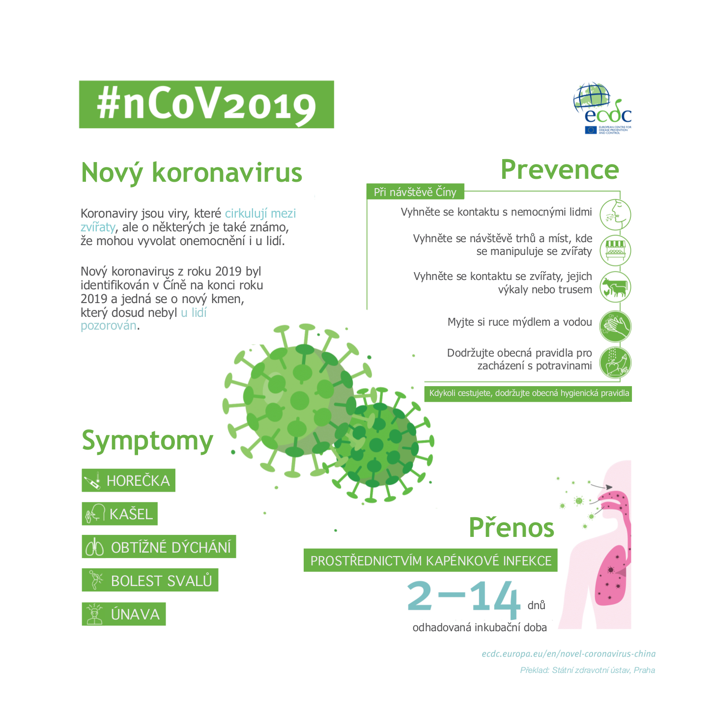 COVID-19, jak zní název onemocnění z nového koronaviru, se začal šířit na sklonku loňského roku v čínském Wu-chanu. Nákaza se následně začala kapénkovou cestou šířit z člověka na člověka. Zasahuje nejčastěji sliznice horních a dolních dýchacích cest. Podle dosavadních zkušeností je inkubační doba infekce dlouhá až čtrnáct dní. Příznaky se mohou objevit v různé míře intenzity a podobají se běžným projevům respiračních chorob. Patří mezi ně horečka, kašel, dušnost nebo slabost. Podle dosud známých informací má nemoc až v 80 procentech případů lehký průběh. Komplikace se nejčastěji objevují u seniorů