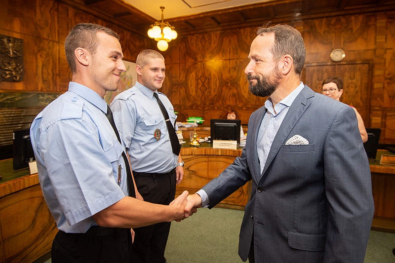 Stužku za záchranu života strážníkům předal primátor Tomáš Macura.