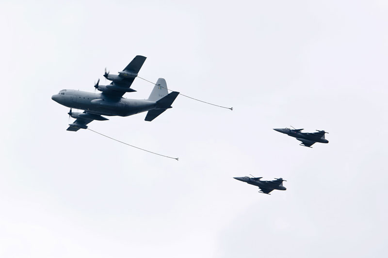 Tankování Gripenů za letu