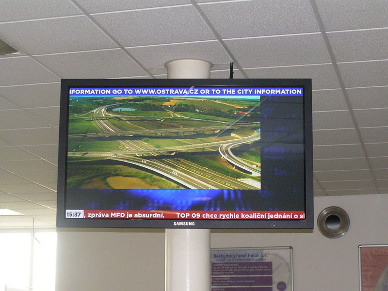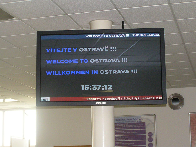 Systém umožňuje také velkou variabilitu prezentací, kde je možné libovolně spojovat text, grafiku, data, obrázky a videoklipy. Díky tomu lze aktuálně reagovat na danou situaci ve městě i v regionu a nabídnout návštěvníkům letiště zajímavé informace. Ihned po příletu a čekání na zavazadla tak mohou cestující zhlédnout na dvou LCD obrazovkách nový klip statutárního města Ostravy a také pozvánky na jednotlivé významné akce.Ve spodní liště obrazovek je formou běžícího textu k dispozici také přesný čas a aktuální zpravodajství v českém a anglickém jazyce.