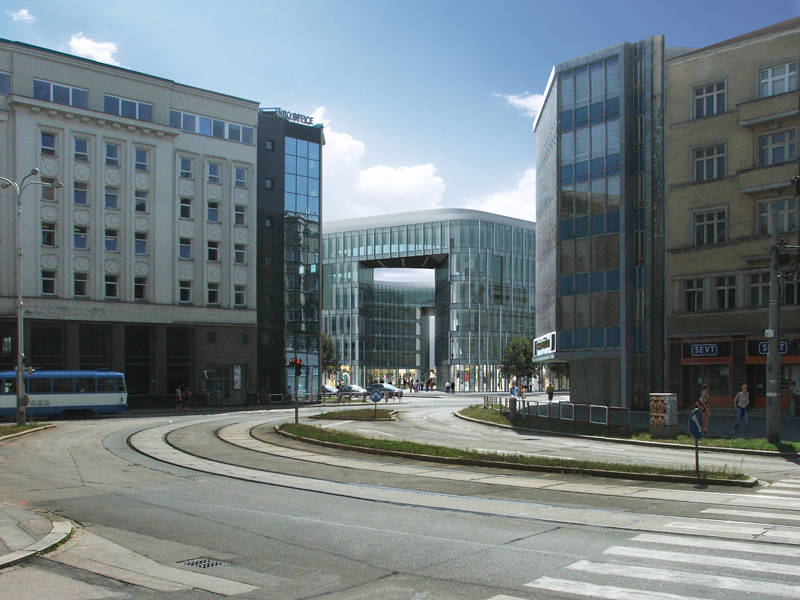 Pohled na začlenění budovy do stávající zástavby