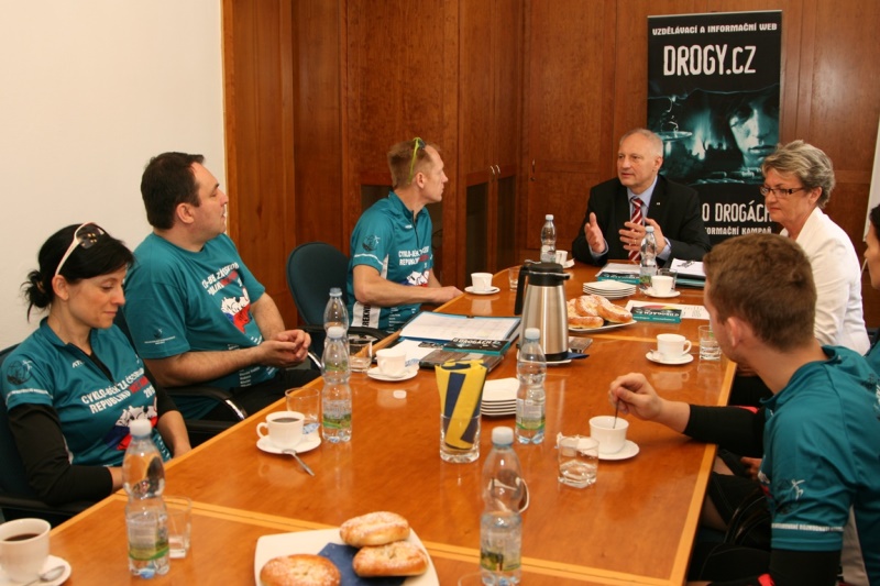 Účastníci cyklo-běhu při debatě s náměstkem Zbyňkem Pražákem.