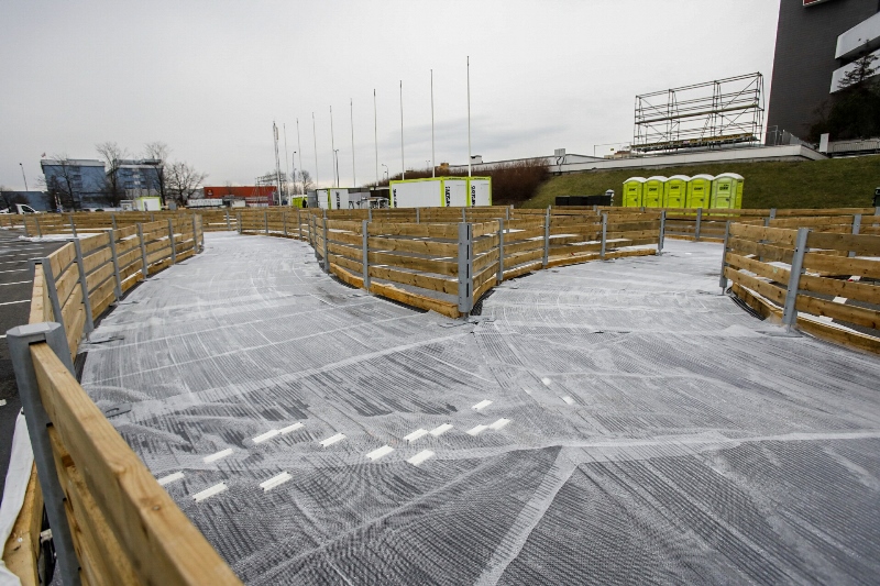 Bruslařské kluziště tvoří dráha se zatáčkami.