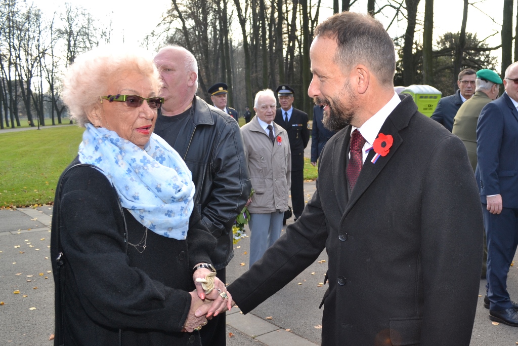 Primátor Tomáš Macura hovoří s Ivanou Škarvadovou, manželkou válečného letce Zdeňka Škarvady.