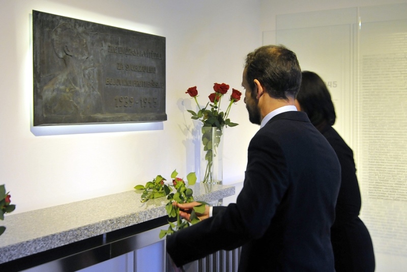 Primátor Tomáš Macura u pamětní desky k uctění obětí fašismu.