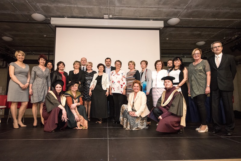 Ocenění učitelé se zástupci města a účinkujícími.