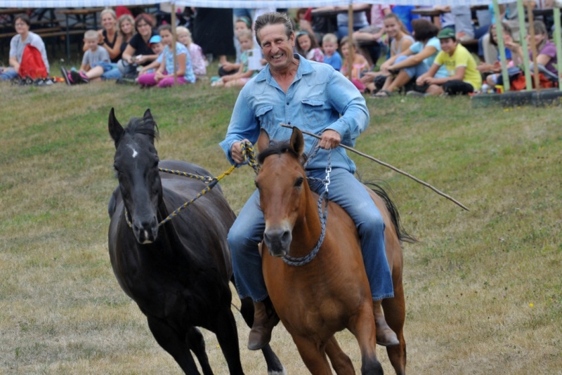 Václav Vydra se svými svěřenci. Jezdit na koni se dá i bez sedla a uzdy.