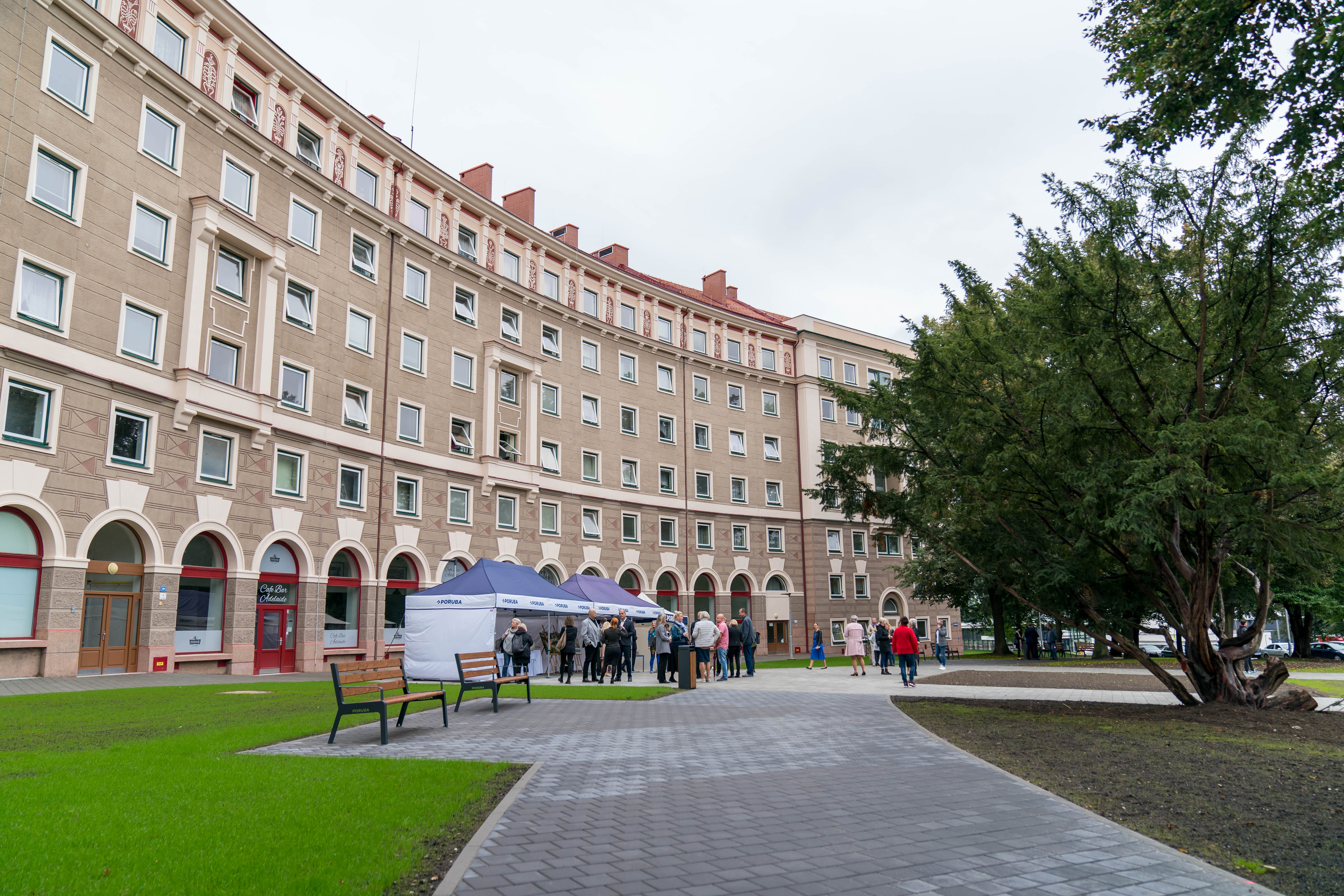 Rekonstruovaný objekt ve stylu sorely 50. let je 250 metrů dlouhý, přičemž zahrnuje 201 bytů a 14 nebytových prostor. Jeho součástí jsou rovněž umělecká sgrafita na fasádách, kterých bychom zde našli 114. Stavebníci museli opravit 12 676, 65 metrů čtverečních fasády, 4 354, 25 metrů čtverečních střešních krytin, 4 692, 14 metrů čtverečních hydroizolace, 3 100 metrů čtverečních tepelné půdní izolace, 58 komínů a postavit 201 zbrusu nových sklepních kójí.