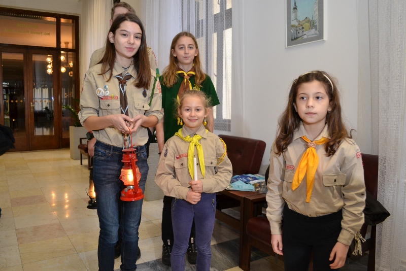 Skauti při příchodu na radnici.