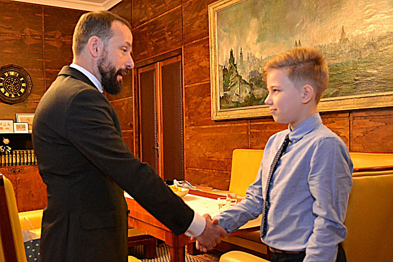 Primátor děkuje Matěji Horákovi za povedenou kresbu.