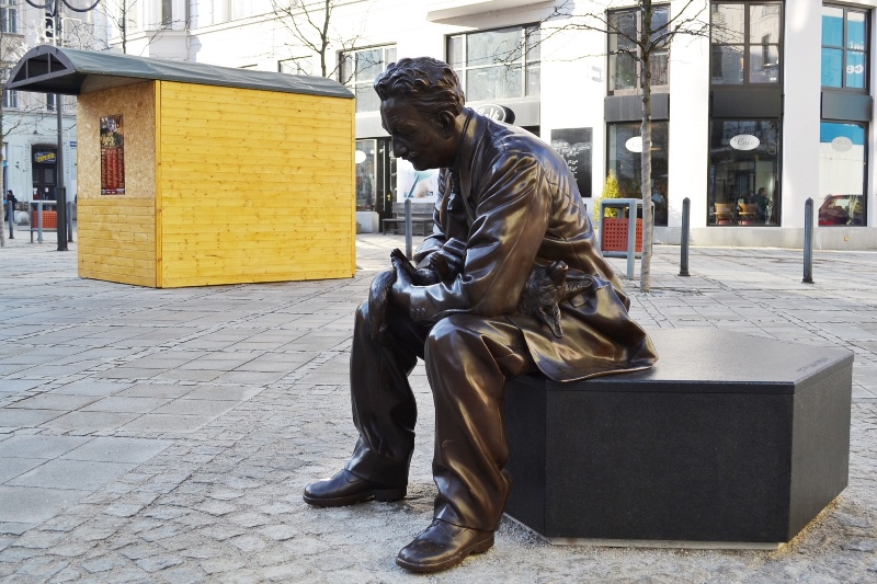 Leoš Janáček drží v náručí lišku Bystroušku.