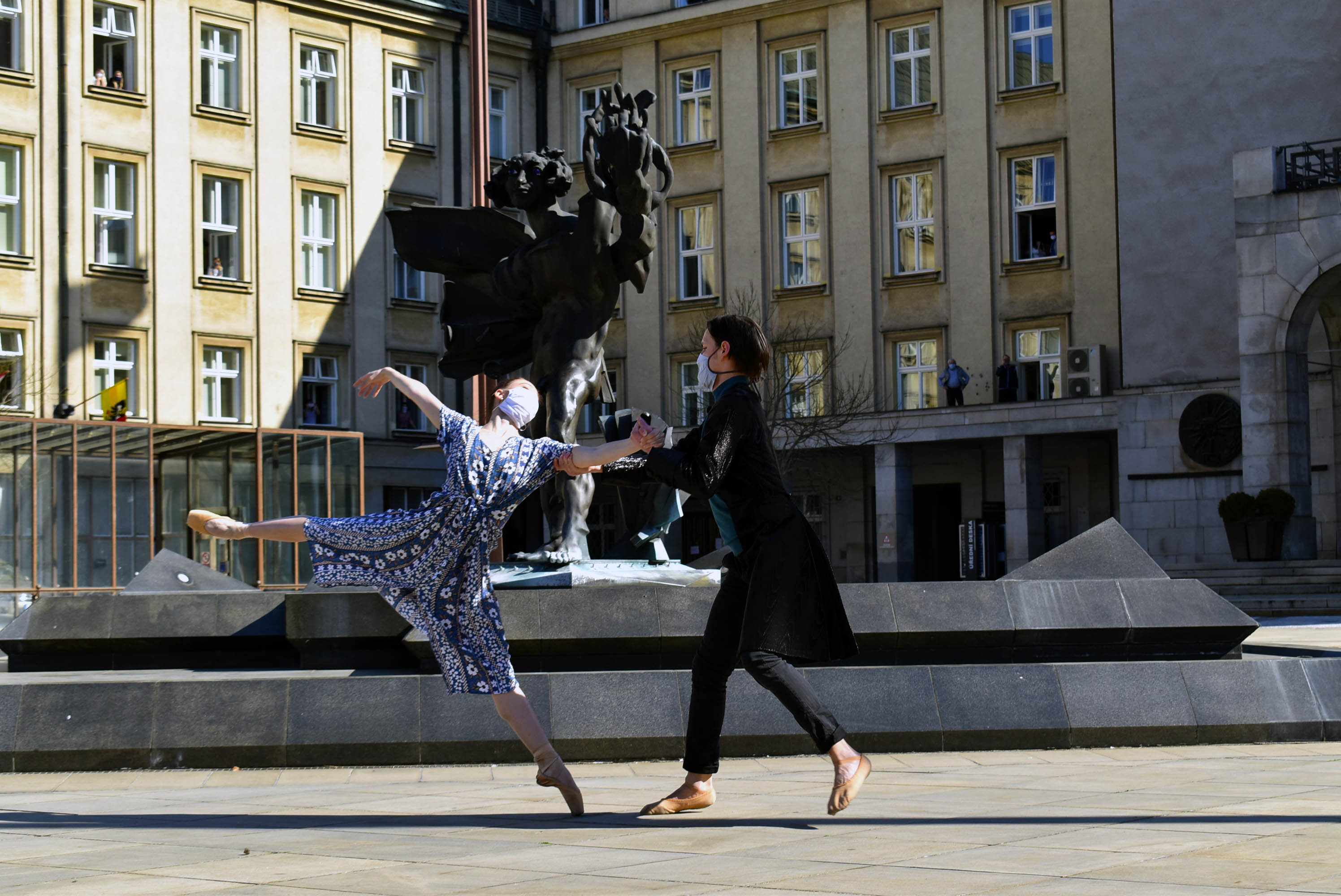 Ladným pohybům tanečníků přihlíželi z oken pracovníci Magistrátu města Ostravy.