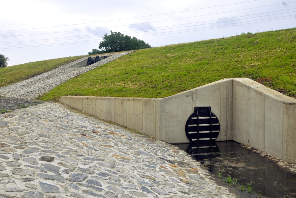 Systém výpustí odvede naopak dešťovou vodu bezpečně za hráz.