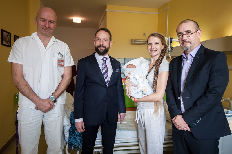 Tomáš Macura, Petr Uhlig a Marek Ožana se šťastnou maminkou.