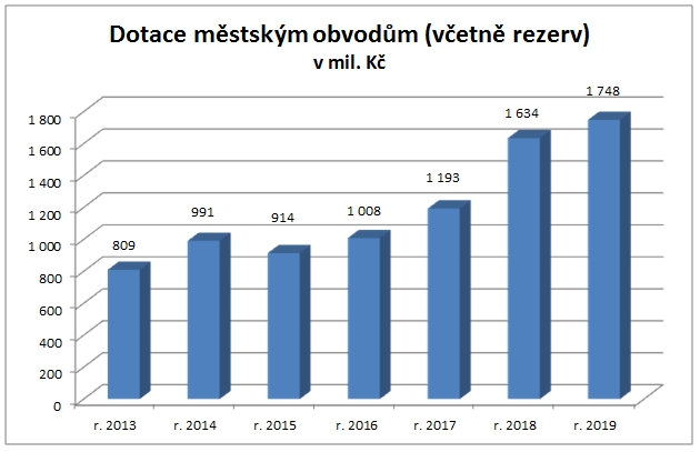 - O 114 milionů korun budou posíleny dotace a rezervy pro městské obvody, na 1,748 miliardy Kč.