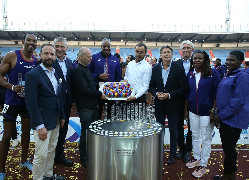 Americký tým přebírá pohár pro vítěze. Pohár předávali primátor Tomáš Macura (druhý zleva) a hejtman Ivo Vondrák.