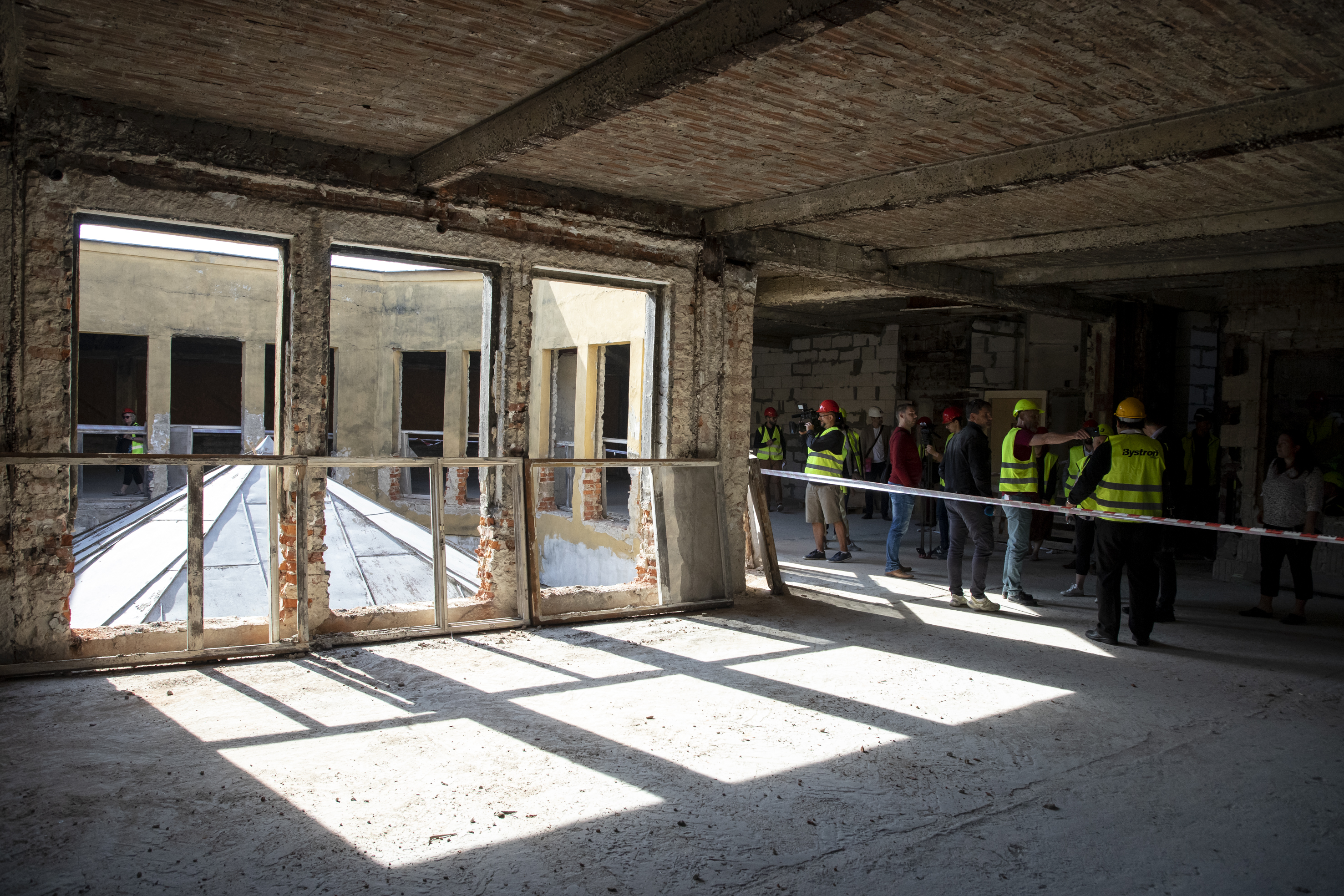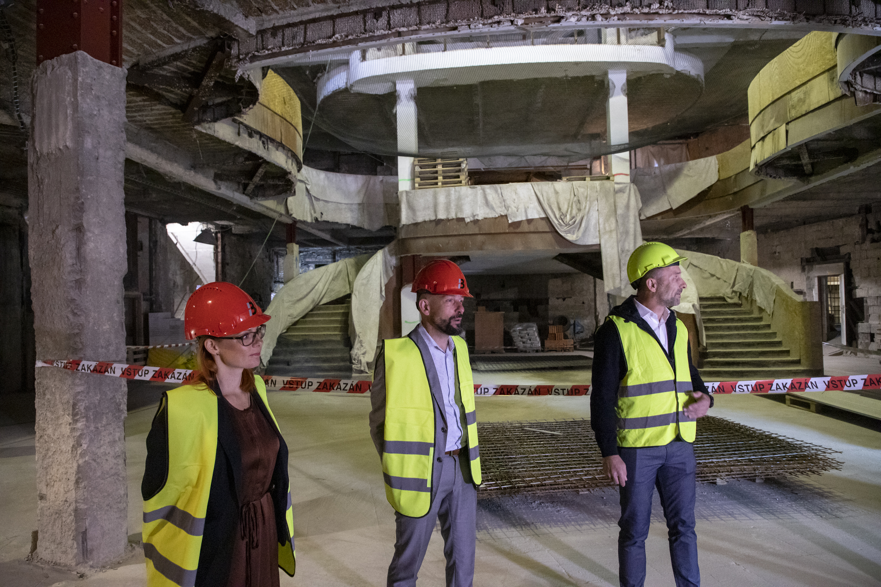 Při prohlídce objektu se primátor Ostravy Tomáš Macura a náměstkyně Zuzana Bajgarová seznámili s průběhem rekonstrukce a mohli zhodnotit postup stavební firmy při opravách památkově chráněných částí interiéru. V této fázi je navíc možné naposledy vidět odhalené všechny nosné konstrukce stavby, což je jeden z důvodů, proč stavbaři pozvali vedení města na kontrolní den. Zástupci stavební firmy spolu s architekty dále informovali o chystaných finálních povrchových úpravách v jednotlivých částech objektu či o řešení historicky významných prvků, mezi něž patří například okna, dveře nebo instalace původního prosklení stěn a světlíku. Pro potřeby architektů i pracovníků památkové péče postupně vznikají makety a ověřovací série interiérových doplňků a detailů.