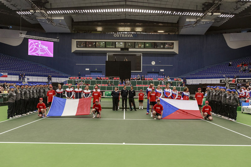 Slavnostní nástup českých a francouzských tenistek.