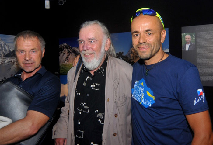 Horolezci Leopold Sulovský (vlevo) a Radek Jaroš na vernisáži.
