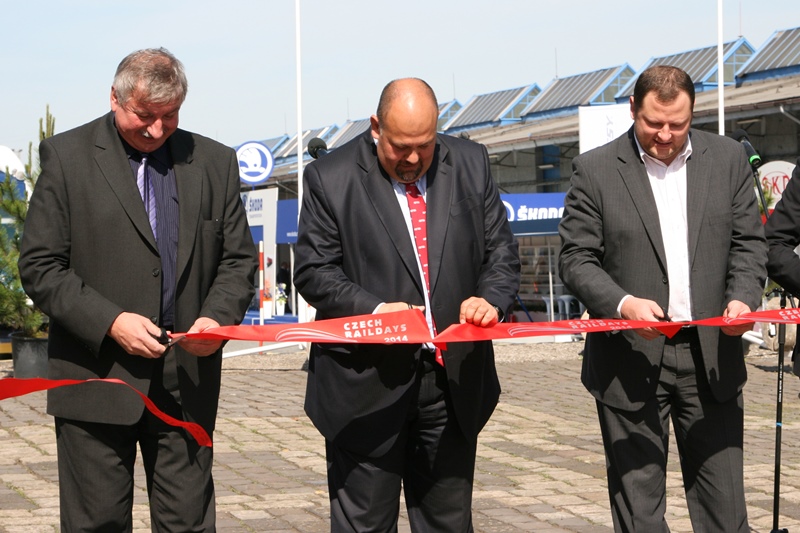 Zprava T. Sucharda, D. Kurucz a P. Surý při stříhání pásky.