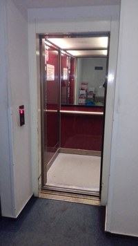 Pozor! - Pro osoby pohybově postižené, zejména pak osoby na vozíku, je druhý výtah zcela nevhodný.