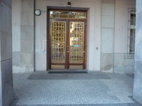 Dveře jsou dvoukřídlé, mechanické, otevírání ven, opatřeny madly a nacházejí se ve výklenku (nice) šíře 198 cm, hloubky 53 cm. Šířka průjezdu je dostatečná (95 cm).