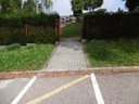 Povrch pěší komunikace, která vede do areálu od spodní, vedlejší branky, je proveden ze zámkové dlažby a je v dobrém stavu.