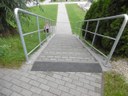 Přístupová cesta od autobusové zastávky k hlavním bránám má povrch ze zámkové dlažby a asfaltu. Podélný sklon dosahuje místy až 10%